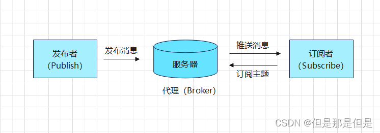 正因为基于客户端-服务器形式,MQTT协议中需要三种身份:发布者(Publish)、代理(Broker)(服务器)、订阅者(Subscribe)。其中,发布者和订阅者都是客户端,代理是服务器,发布者可以同时是订阅者。