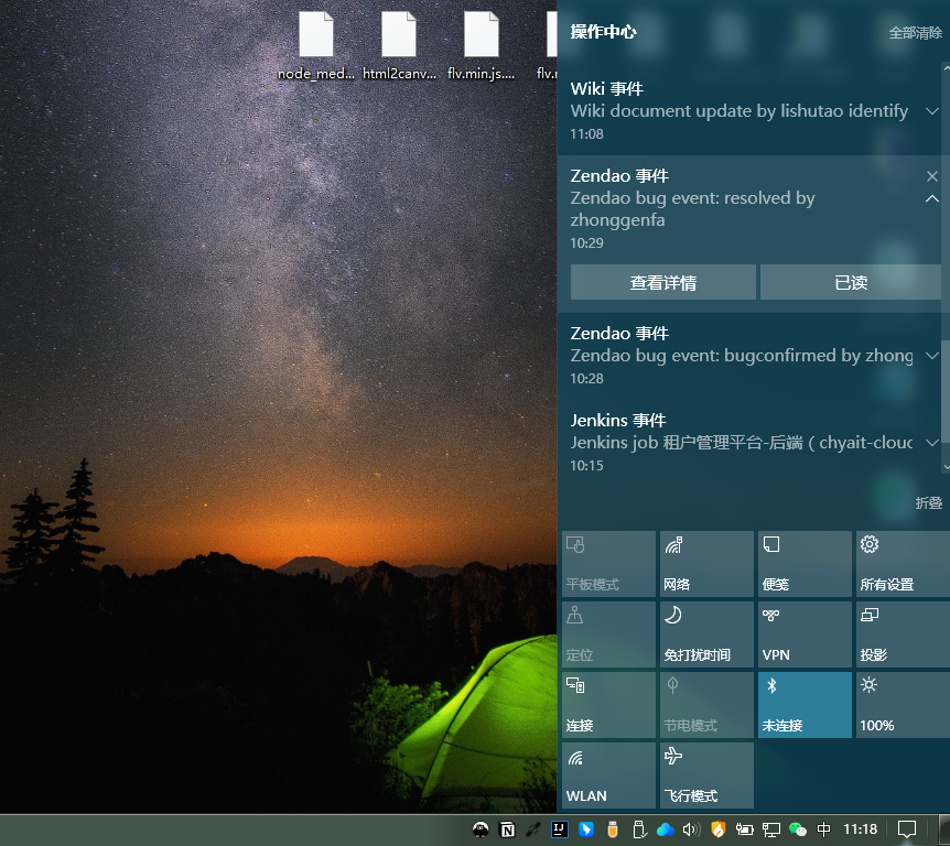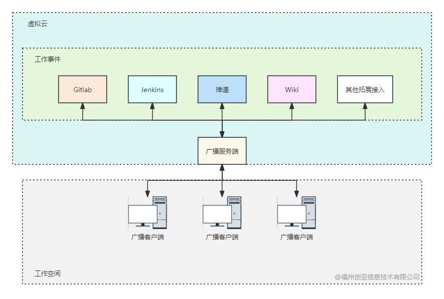 目录 搜索 展开 简介部署环境服务端部署客户端使用整合GitlabJenkins禅道Mindoc 暂无相关搜索结果! 阅读次数:99 简介 介绍系统结构示意图客户端使用截图弹窗通知通知栏菜单栏介绍一款工作事件的广播-接收系统,能够将工作环境内的工作事件通过播报的形式推送至工作空间。优点是灵活便捷整合各个平台的事件处理以及灵活配置广播内容,且轻量级,以极小的内存占用达到系统使用目的。系统结构示意图客户端使用截图弹窗通知通知栏菜单栏作者:admin 创建时间:2024-03-12 15:09最后编辑:admin 更新时间:2024-03-12 15:13 上一篇: 下一篇: 部署